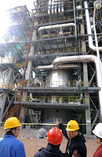 3月16日,技術(shù)人員在內(nèi)蒙古伊泰集團煤制油公司合成裝置區(qū)安裝設(shè)備